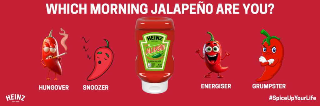 Good question. The world of condiments is changing—hot sauces are on the rise, and people are looking for bold flavors to start their day. Heinz Jalapeño Ketchup blends the rich, thick taste of Heinz with a subtle heat that awakens your taste buds and fuels your morning.